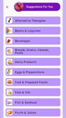 • Food Suggestions. The best food choices within a food group, based on your personal profile. An extremely valuable tool when at restaurants or when grocery shopping. Over 850 natural food items and growing number of recipes are included.