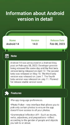 With this app, get insight and knowledge of old and latest android version. Get complete info on android versions :